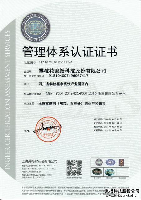 • 質(zhì)量體系證書